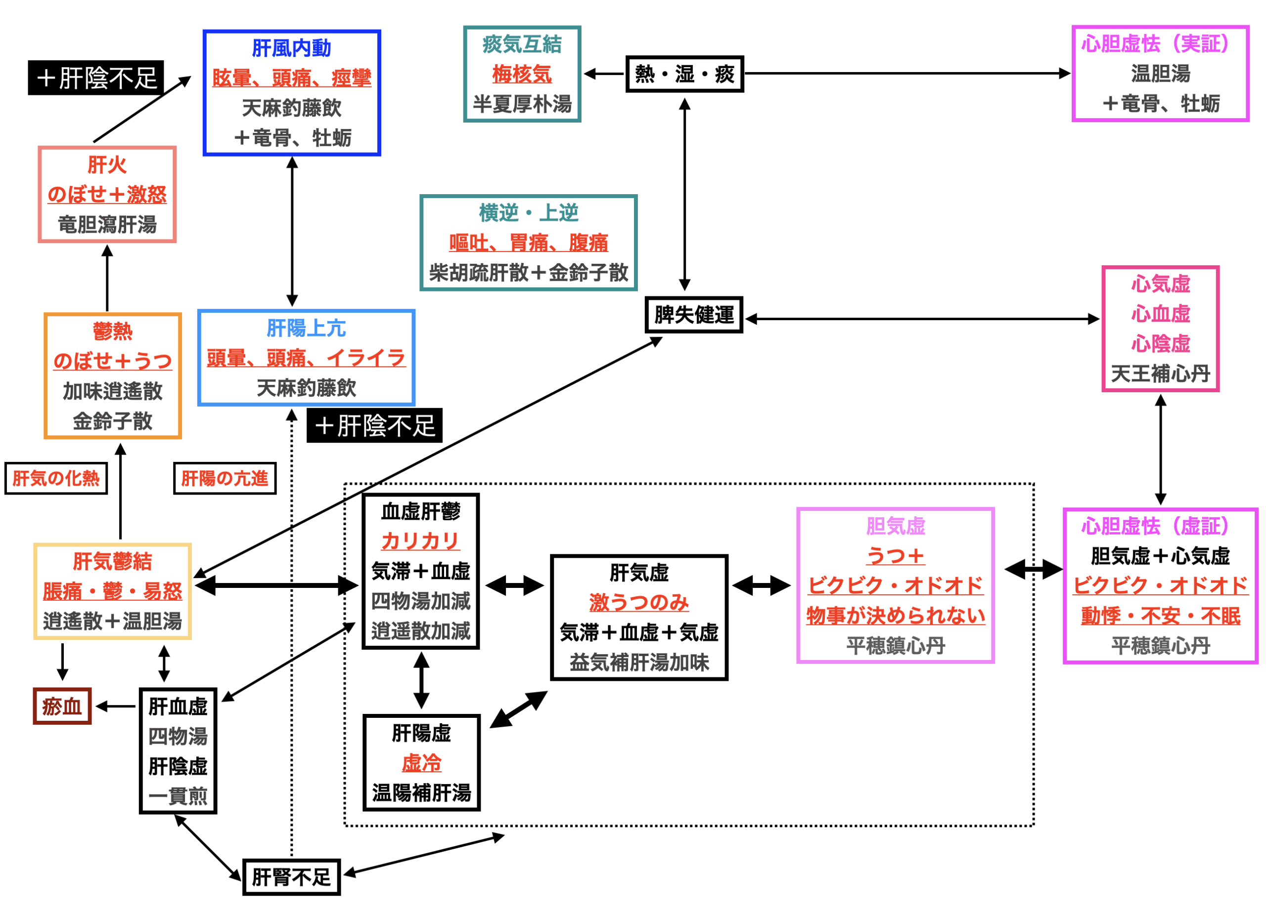 ①疏泄過剰によって、易怒、胸肋脹痛、鼠(きん)痛無定所(あちこち痛くなる)、横逆侵犯他臓(胃痛、嘔吐、咳嗽、腹痛、下痢)が起こってきます。