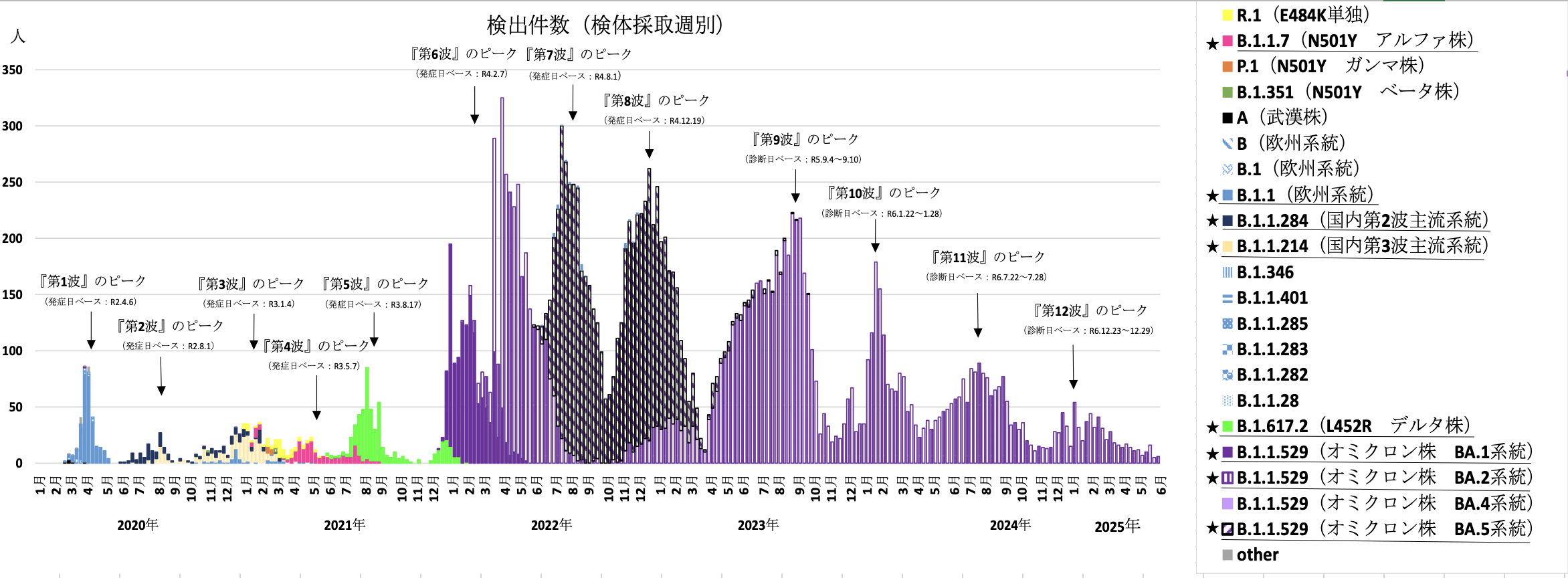 埼玉県の詳細なデータで新型コロナウイルスの変異の様子が見て取れます。(国立医療保健科学院)