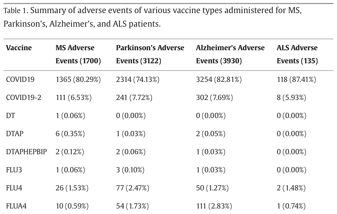 ワクチン有害事象報告システム(VAERS)の2022年1月2024年7月までのデータからを解析したところ、ワクチン接種後に有害事象として発症したALS(筋萎縮性側索硬化症)は135例報告されており、その中で新型コロナワクチン接種後のものは126例であった。(2025, Sodagari)